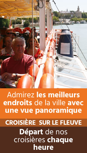 - Une heure de bâteau visitant le classique et la moderne Séville, soigneusement commentée en Français, Espagnol, Inglés, , Portuguais, Allemand, Italien ... et d'autres langues principales.